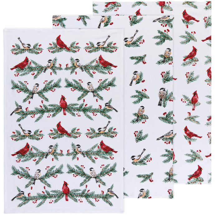 Birds & Boughs Christmas Floursack Dishtowels Set of 3