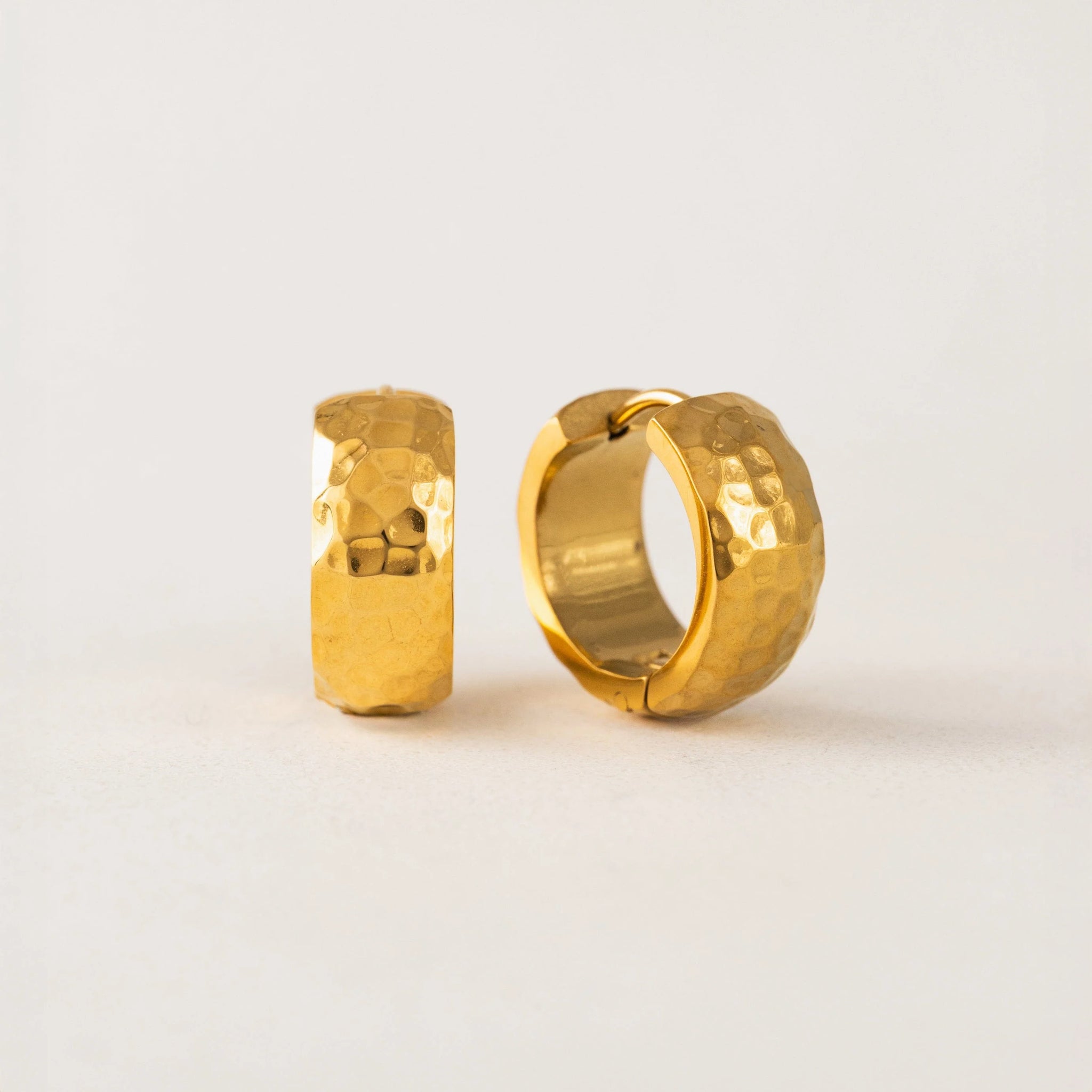 Glam hoops with a light-catching surface that's akin to sunshine. Made with PVD and stainless steel, you can wear these waterproof earrings anywhere.