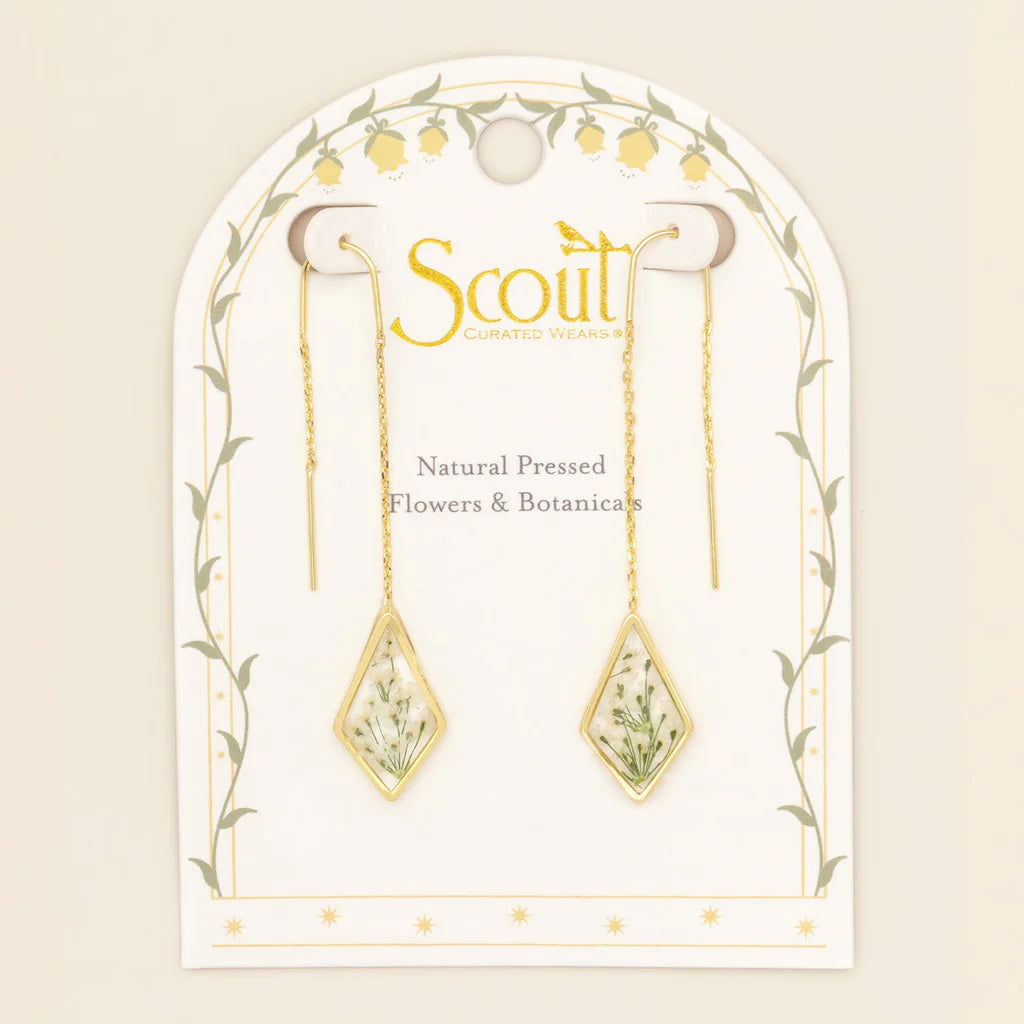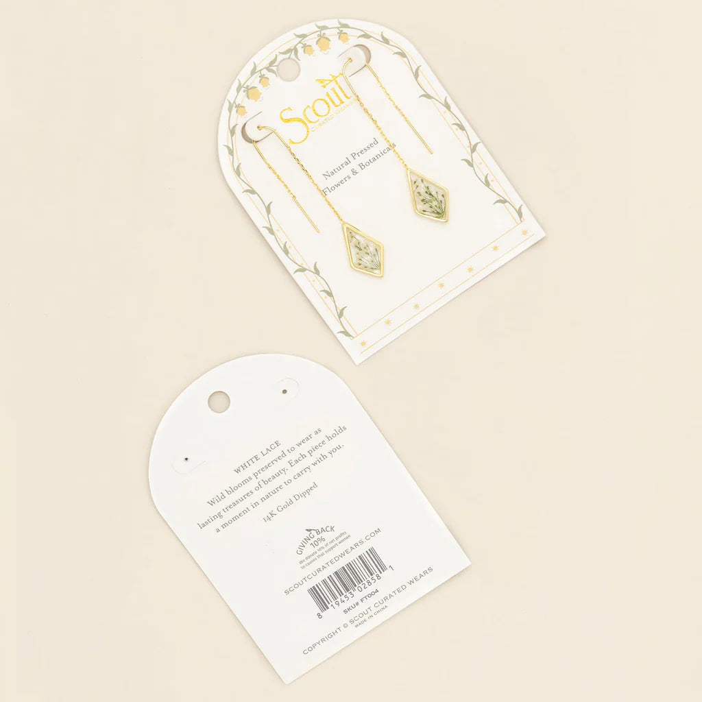 Pressed Flower Thread Earring - White Lace Flower/Gold