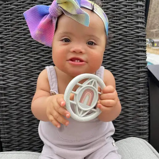 Our exclusive Rainbow World Teether is a beautiful reflection of this vision. Designed to be a forever keepsake, the Rainbow World Teether is not only a symbol of celebration but also a tool for raising awareness.