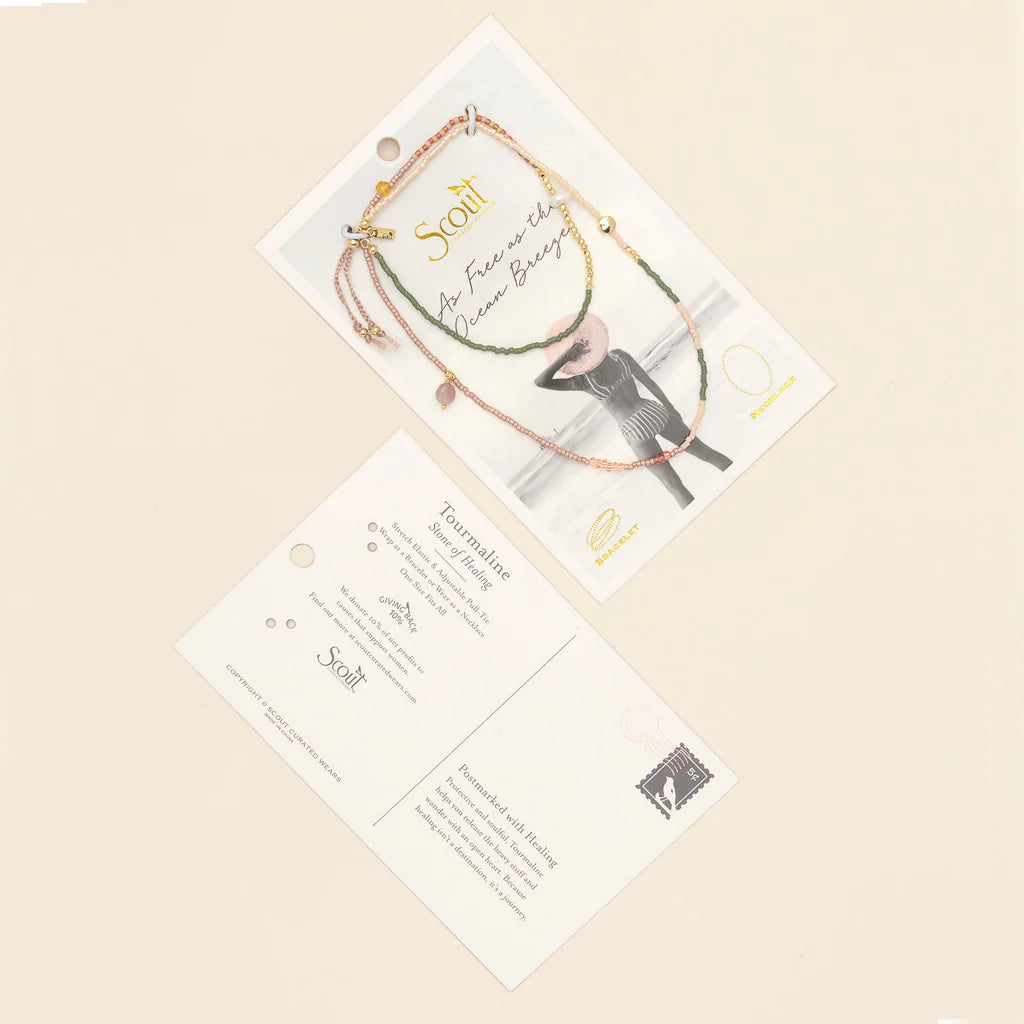 Expanding our best-selling Mixed Media collection, the new Mixed Media Wrap doubles as a bracelet or necklace. Its comfortable elastic cord and adjustable pull-ties make it a perfect fit for every size.