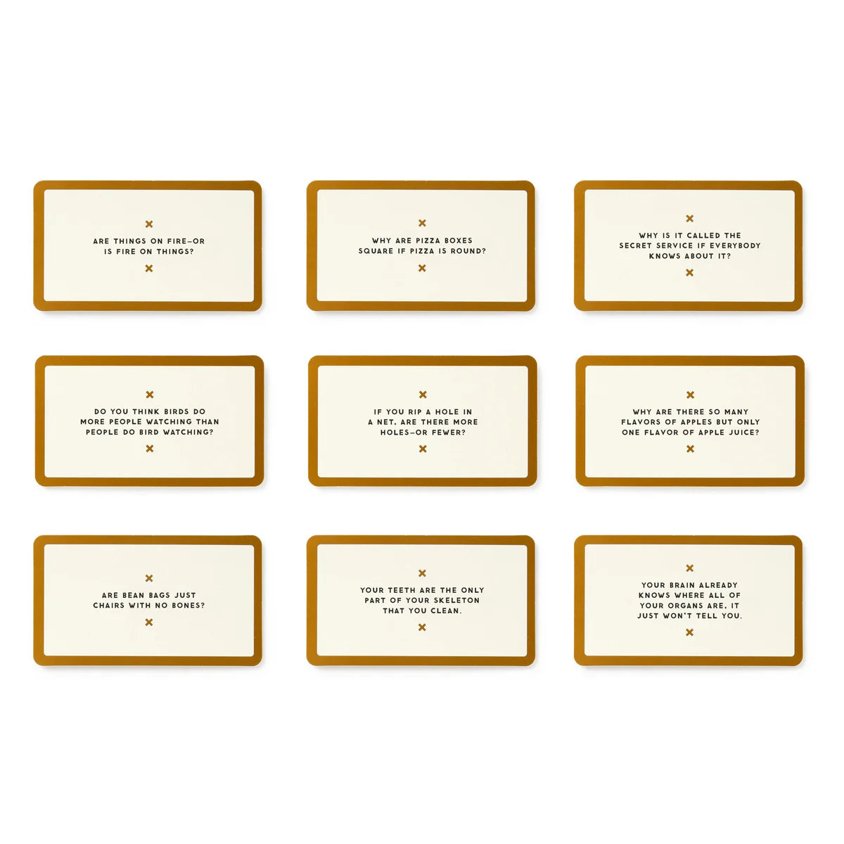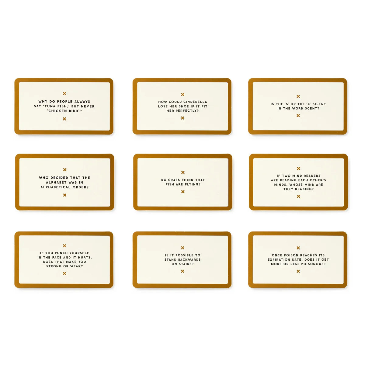 You don’t have to be high to ponder some of life’s most significant, thought-provoking questions–you know, important stuff like ‘do you think popcorn is a vegetable?’ So inside you’ll find 200 hilarious, yet profoundly ‘deep’ topics that are actually fun to talk about. Includes 200 questions cards and some rules to turn it all into a game (if you want to, that is).