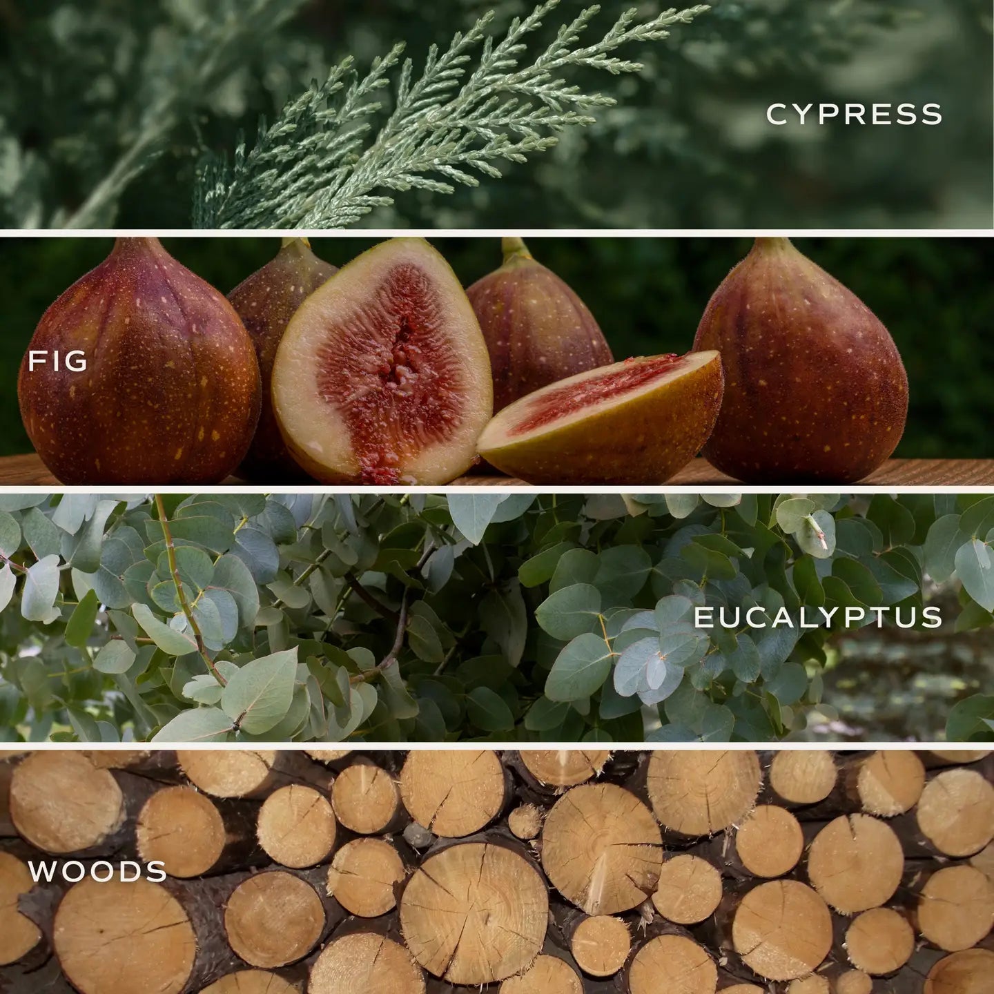SCENT NOTES: • Top: Tropical fruits, Wild Raspberry • Middle: Ripe Fig, Eucalyptus, Clove • Base: Canadian Cypress, Tonka Bean, Musk
