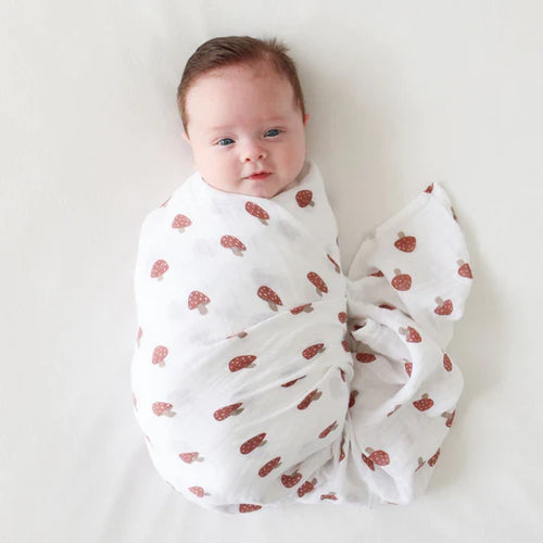 Lulujo Swaddle Blanket Muslin Cotton Mushroom