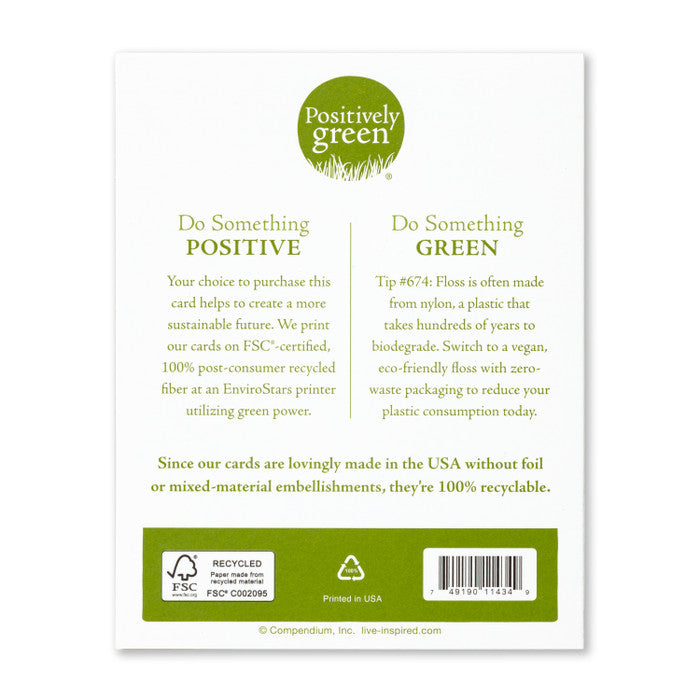 FEATURES: Cards are printed in the USA with FSC®-certified, 100% post-consumer recycled paper