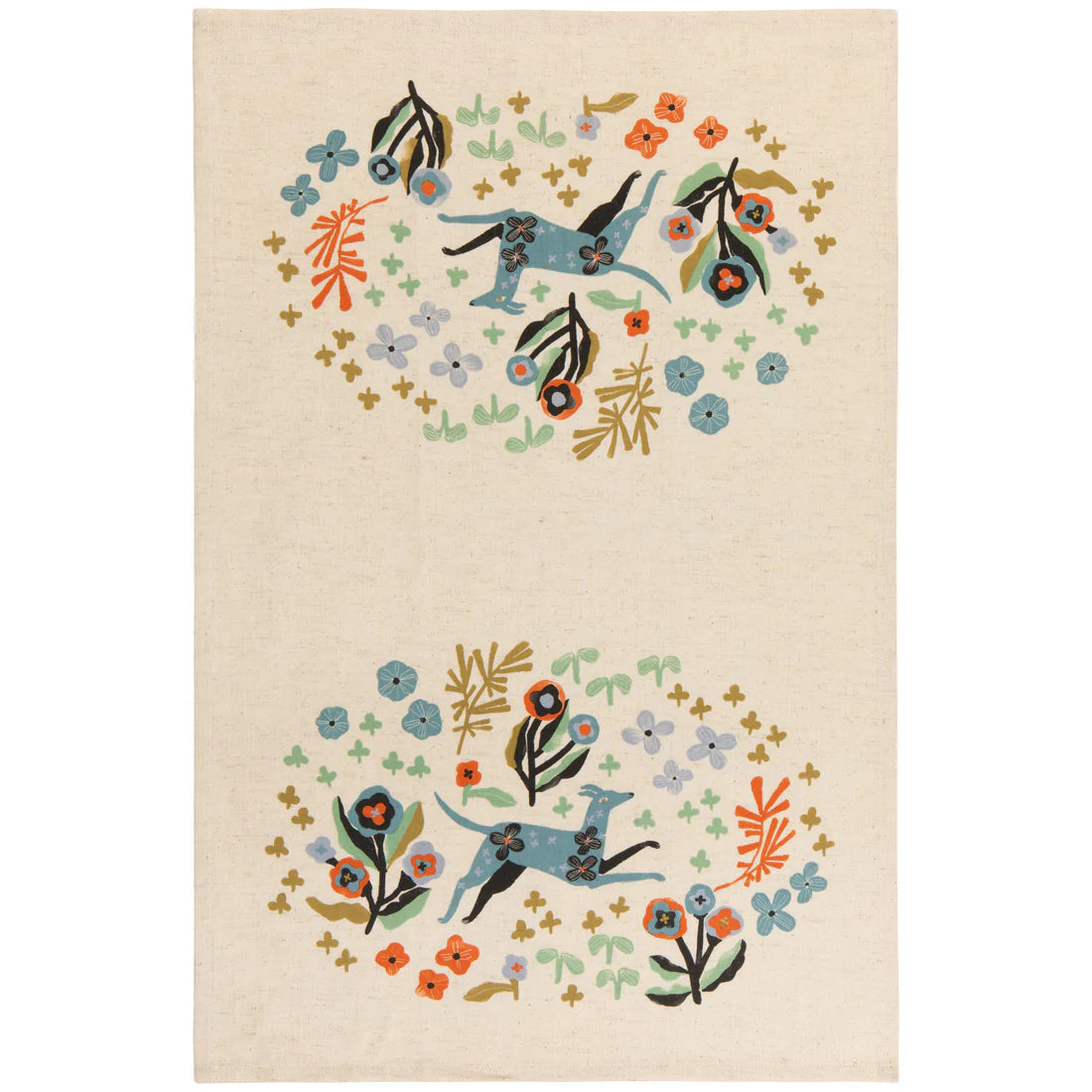 Add life and character to your kitchen with our fun and colorful printed and woven cotton dishtowels. A perfect combination of form and function, these towels will make washing up less of a chore. Conveying an unassuming beauty this design, from the Dogwood collection, roams along the country road with a playful pup and a palette of rich rust, serene blue and striking black.