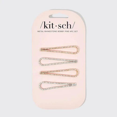 Kitsch - Metal Rhinestone Drop Bobby Pins 4pc Set - Gold/Silver