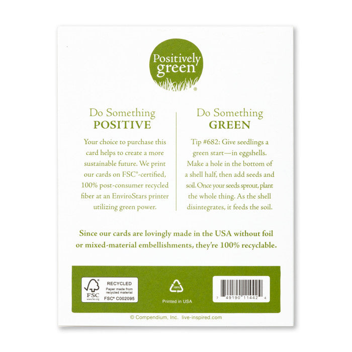 FEATURES: Cards are printed in the USA with FSC®-certified, 100% post-consumer recycled paper